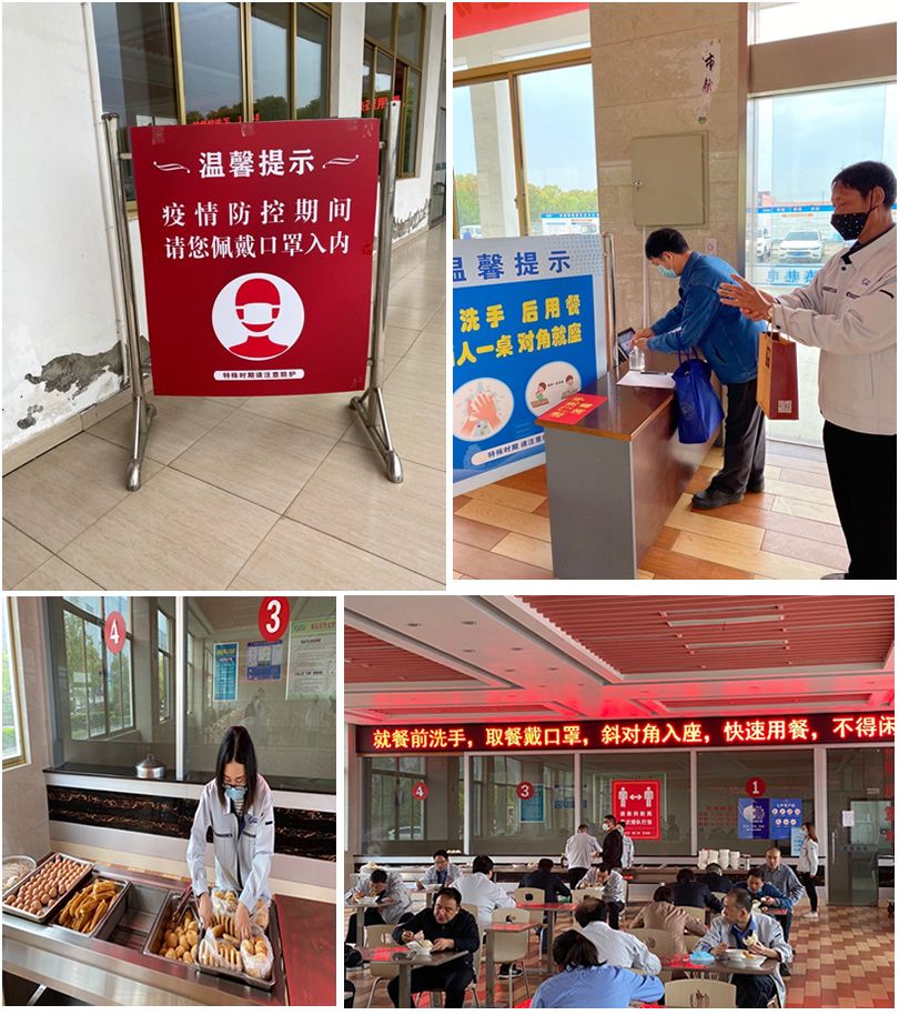 随着江苏省应急响应级别下调,为响应国家复工复产的号召,更好地满足职工用餐要求,公司上报滨江管委会获批后,于5月1日正式恢复员工餐厅堂食服务。为确保员工安全、有序用餐,总经办召开专题会议进行部署,一是采取分时段、分部门用餐模式,最大限度的避免用餐人员拥挤聚集;二是严格控制排队用餐人流密度,保持有效安全距离;三是两人一桌斜对角入座,禁止聚集用餐;四是要求用餐人员做好个人防护,餐前餐后都必须佩戴口罩、洗手消毒,用餐后清理桌面,及时离开。